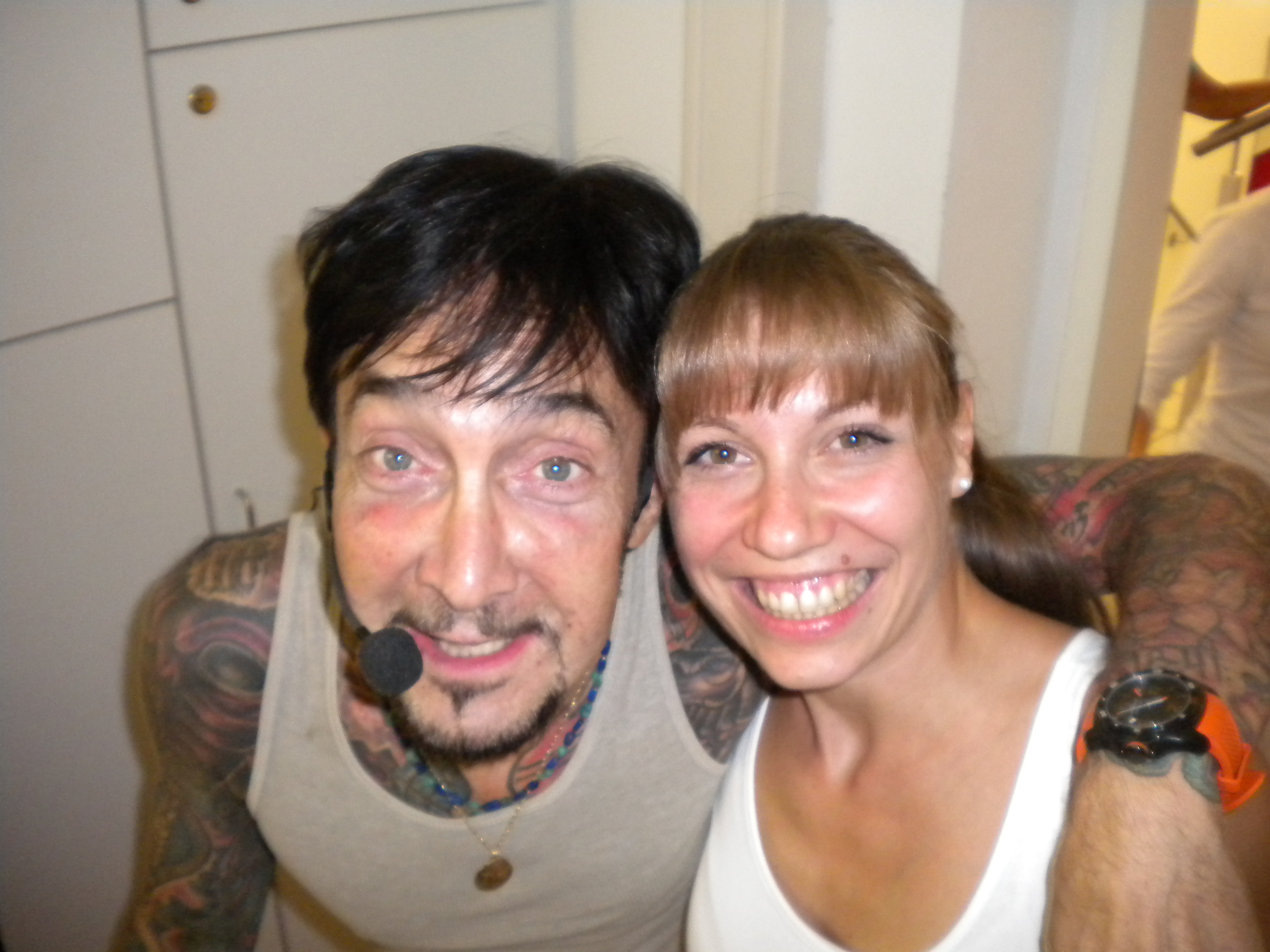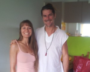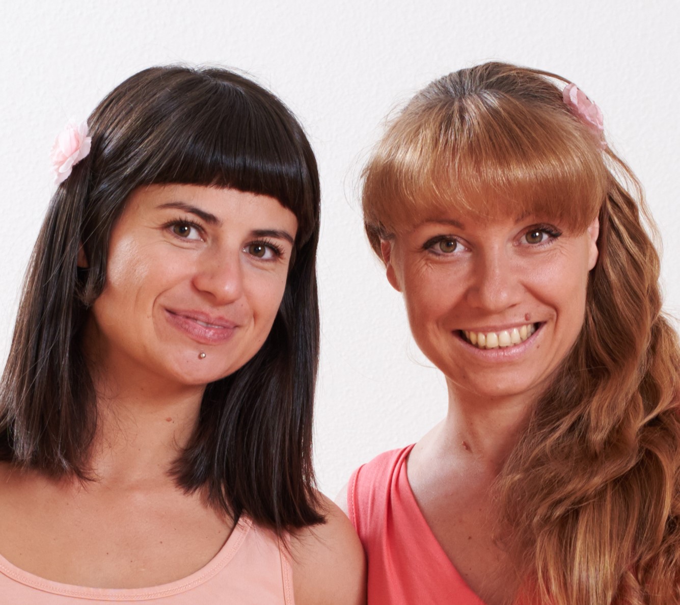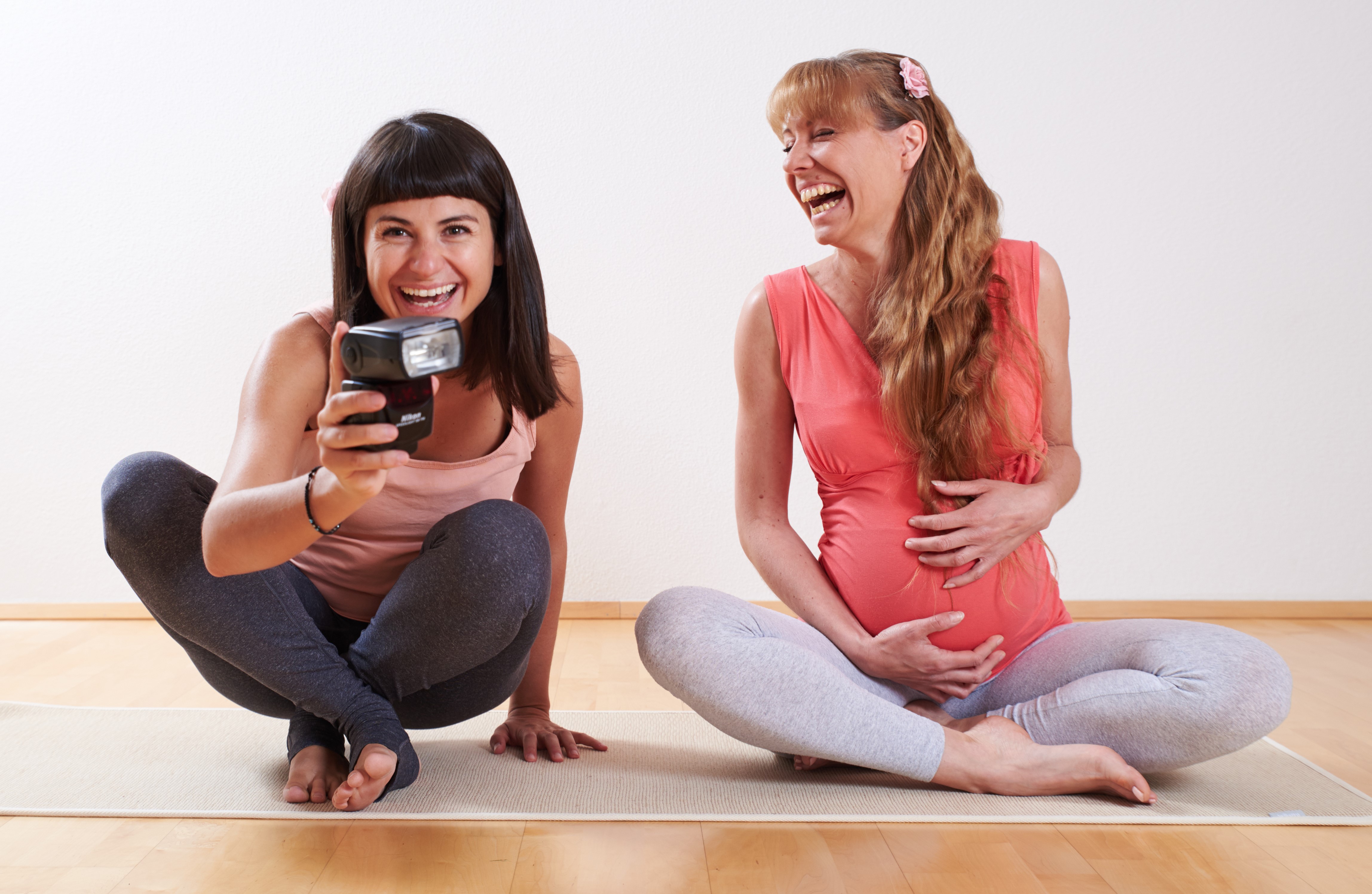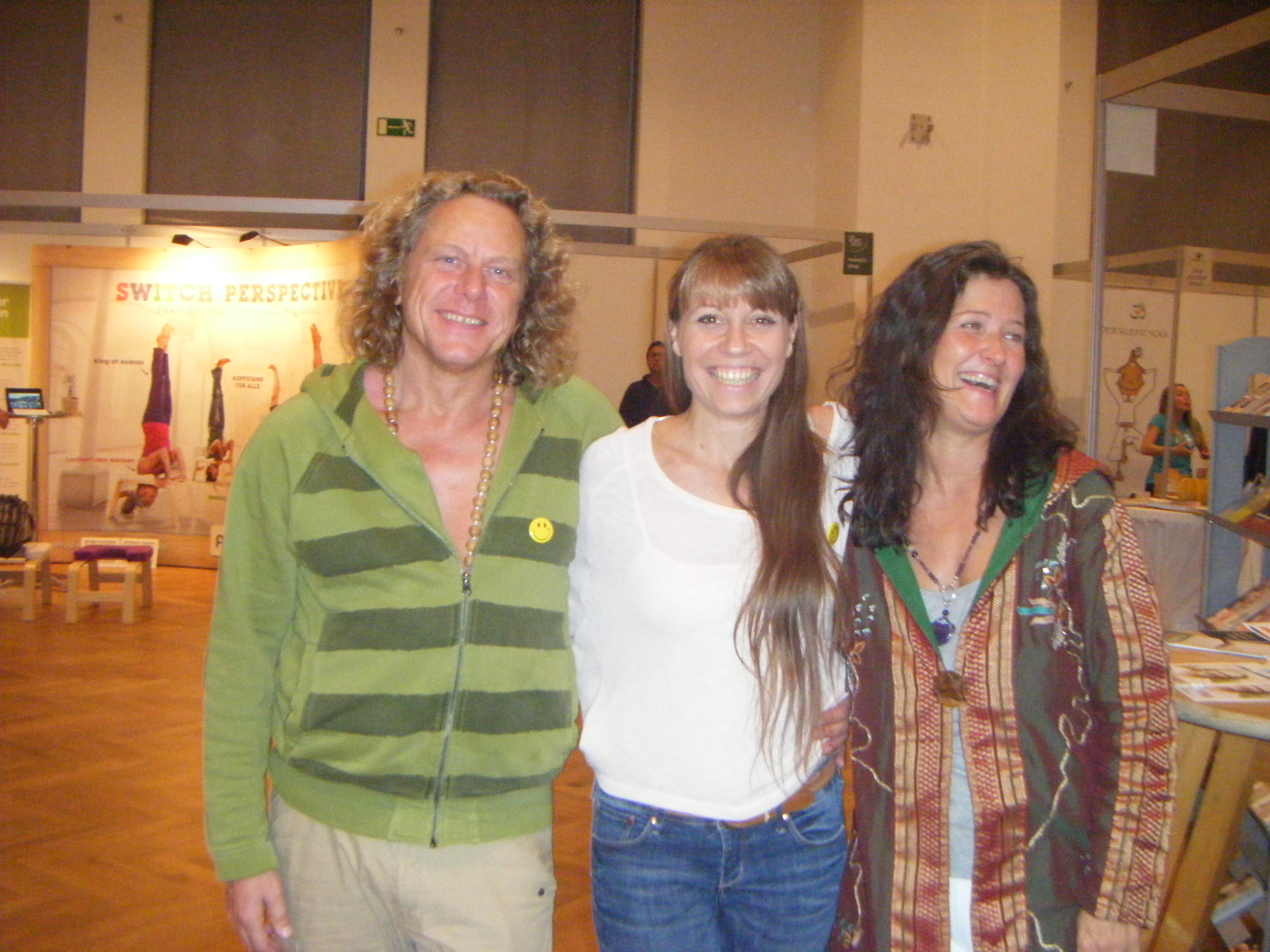 Das Organisatoren Duo der Yogamesse und die Fotografin in den Tüchern des Flying Yoga 🙂
